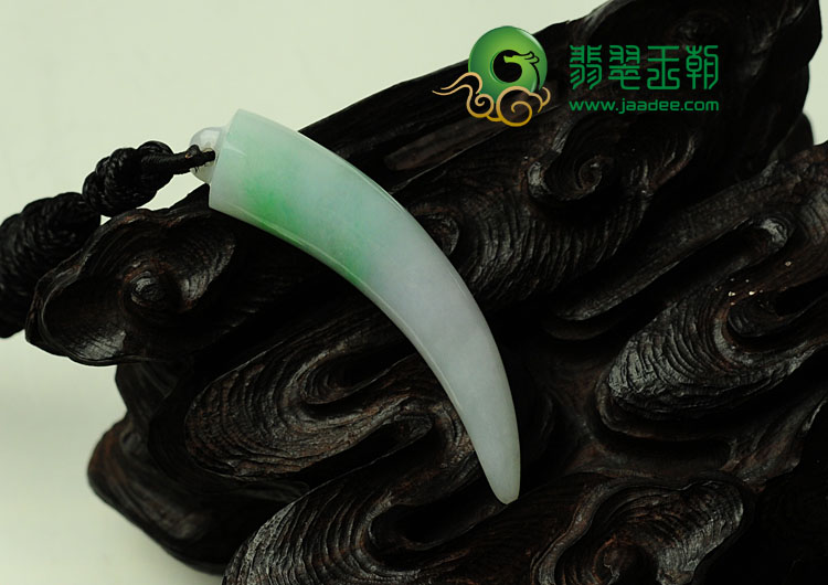 糯冰种春带彩缅甸翡翠龙牙挂件