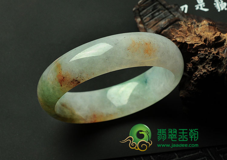 糯冰种三彩缅甸翡翠手镯(52.3mm)