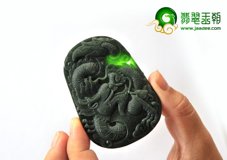 糯冰种墨翠缅甸翡翠A货龙牌挂件