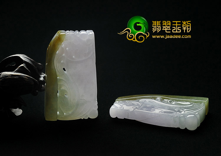 糯冰种紫罗兰褐黄翡缅甸翡翠A货龙凤牌挂件(一对)