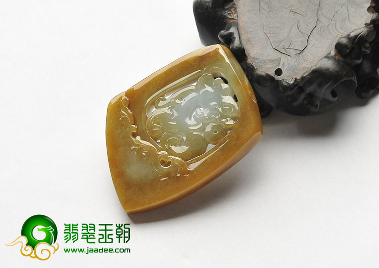 糯冰种褐黄翡缅甸翡翠A货仿古龙牌挂件