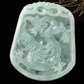 糯冰种紫罗兰飘花缅甸翡翠A货龙凤牌挂件(一对)