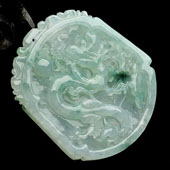 糯冰种翠色缅甸翡翠A货仿古龙牌挂件
