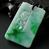 糯冰种翠色缅甸翡翠A货仿古龙凤牌挂件