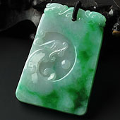 糯冰种翠色缅甸翡翠A货仿古龙凤牌挂件