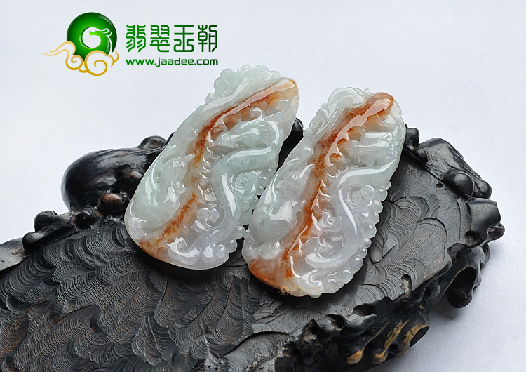 糯冰种红黄翡晴水缅甸翡翠A货龙凤牌挂件(一对)