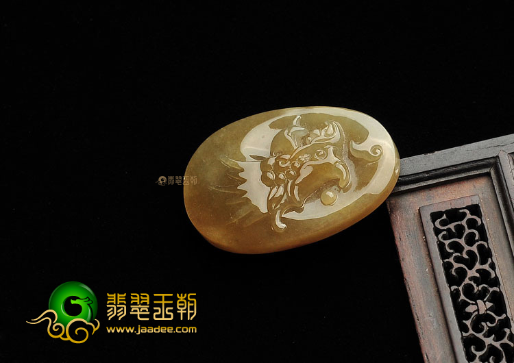 (超值推荐)糯冰种褐黄翡龙凤呈祥挂件