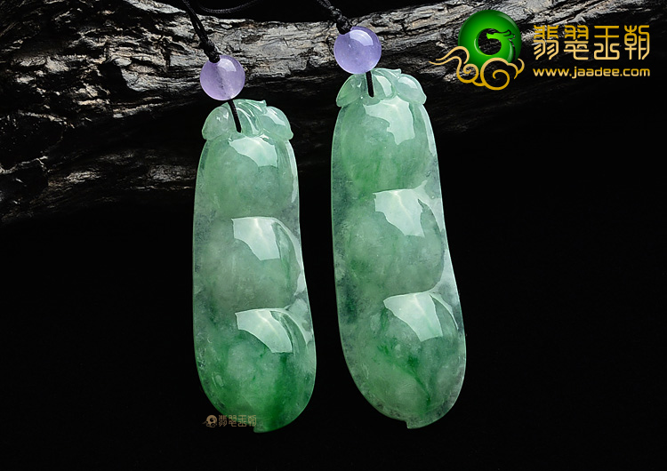 (超值推荐)糯冰种飘翠四季豆挂件(一对)