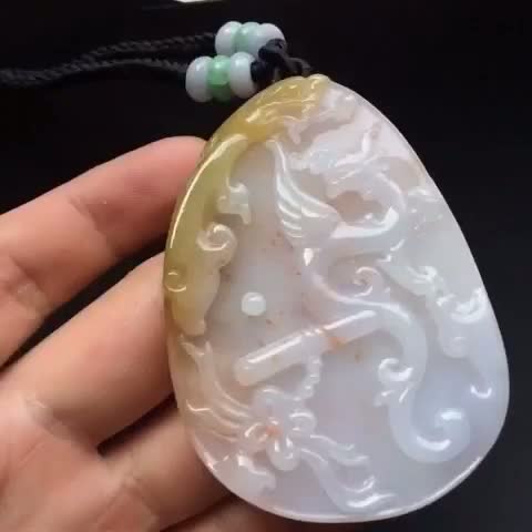 (一口价扫货)糯冰种褐黄翡飘红花龙凤呈祥挂件