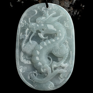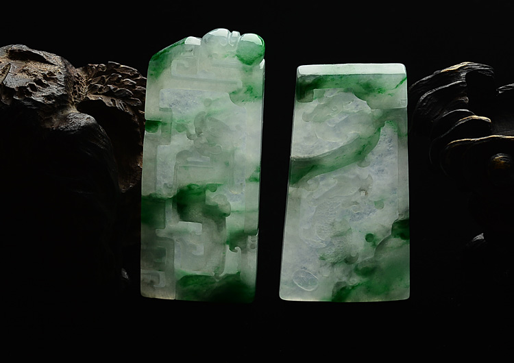 (超值推荐)冰种飘翠仿古龙凤牌挂件(一对)