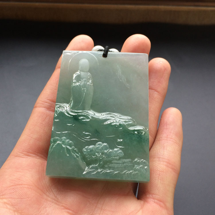 (超值推荐)(高松峰大师作品)冰种飘花佛光普照挂件