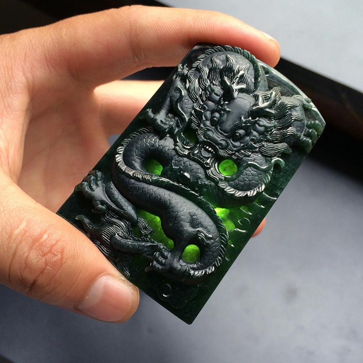 (超值推荐)冰种墨翠龙牌挂件