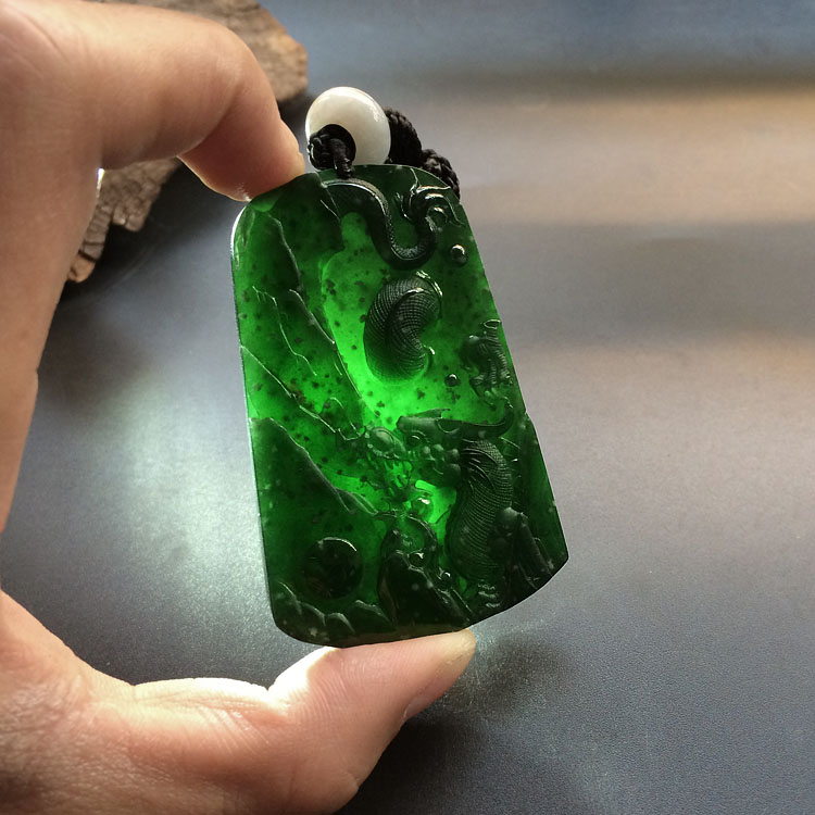 冰玻种墨翠龙牌挂件