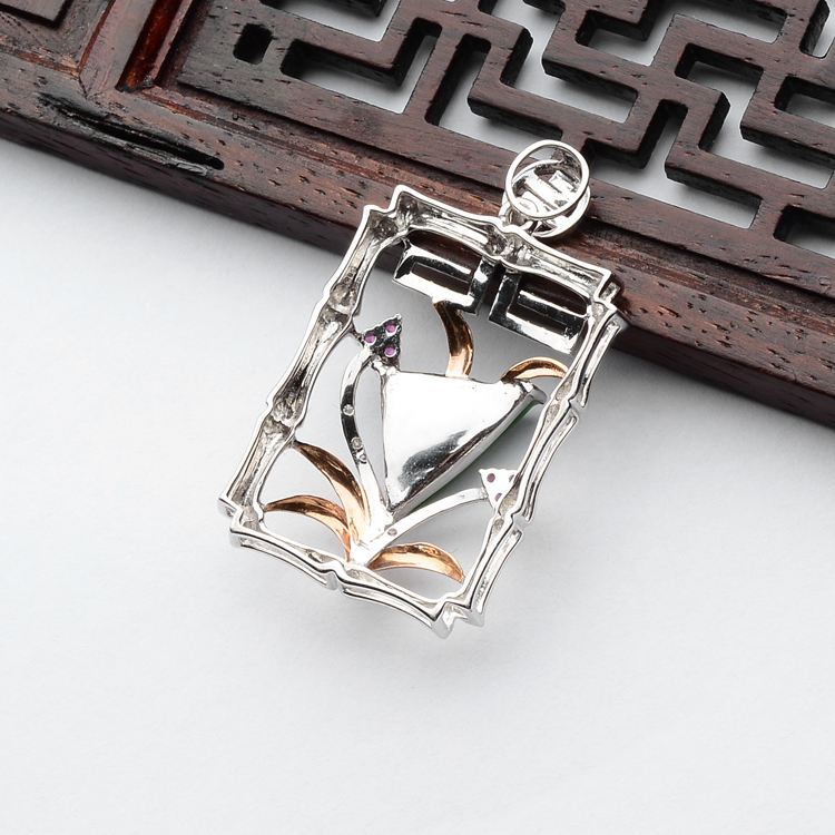 (超值推荐)糯冰种阳绿镶彩金钻石胸坠
