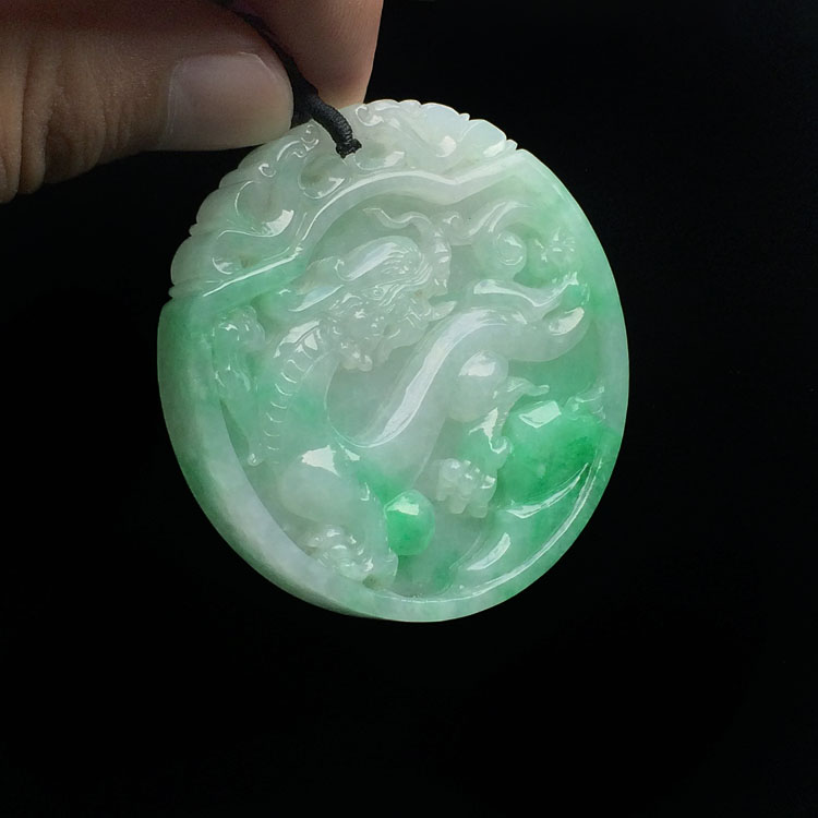(超值推荐)糯冰种飘翠龙凤牌挂件