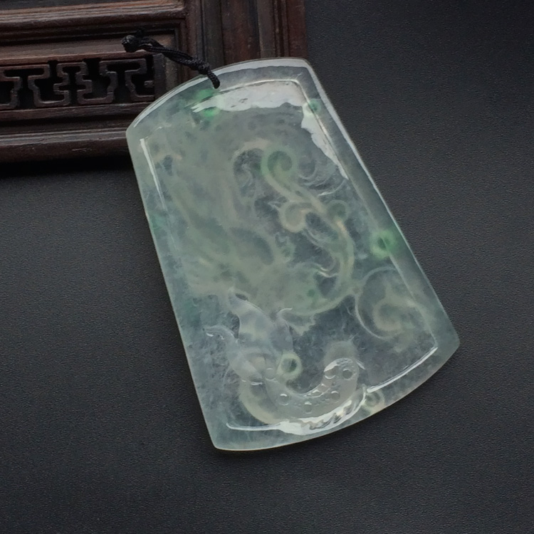 冰玻种晴水略飘翠龙牌挂件