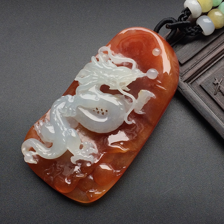 (超值推荐)糯冰种红黄翡龙牌挂件
