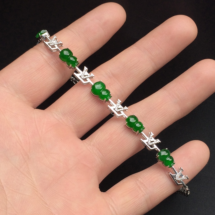 (超值推荐)冰种蓝绿镶白金钻石葫芦手链