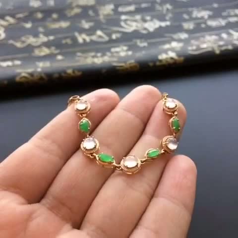 (超值推荐)冰种无色/翠色镶玫瑰金随形手链