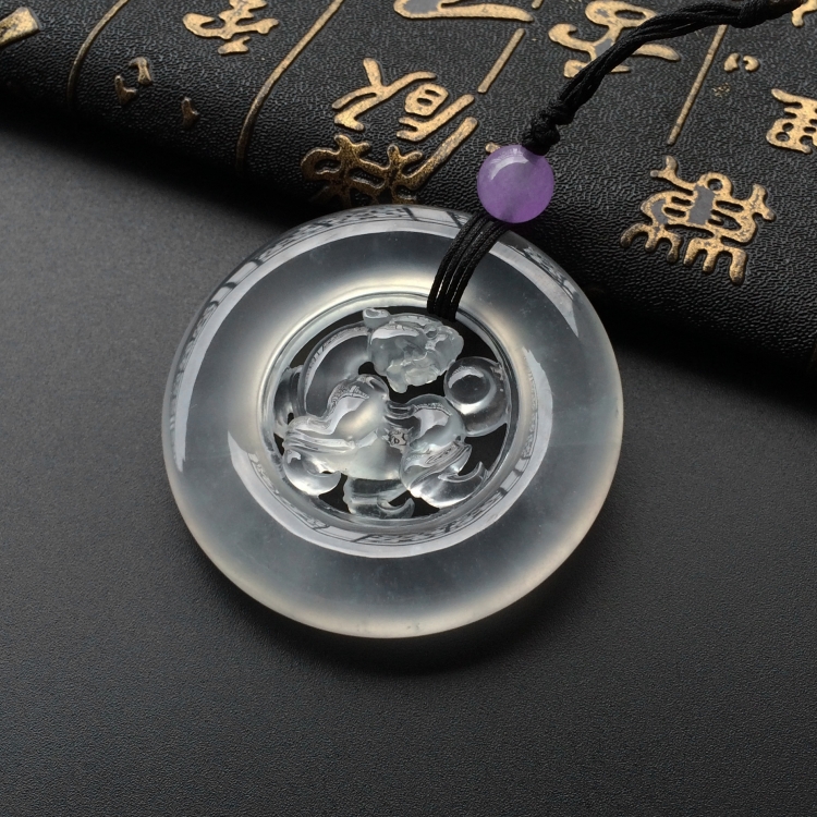 (超值推荐)玻璃种淡晴水仿古龙圆牌挂件