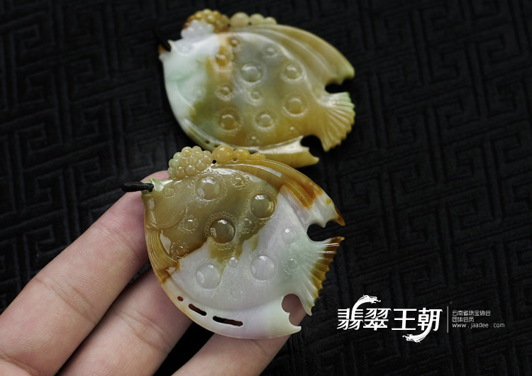 糯冰种三彩缅甸翡翠双鱼佩(一对)