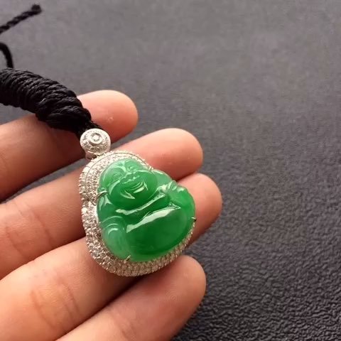 (超值推荐)糯冰种阳绿镶白金钻石玉佛胸坠