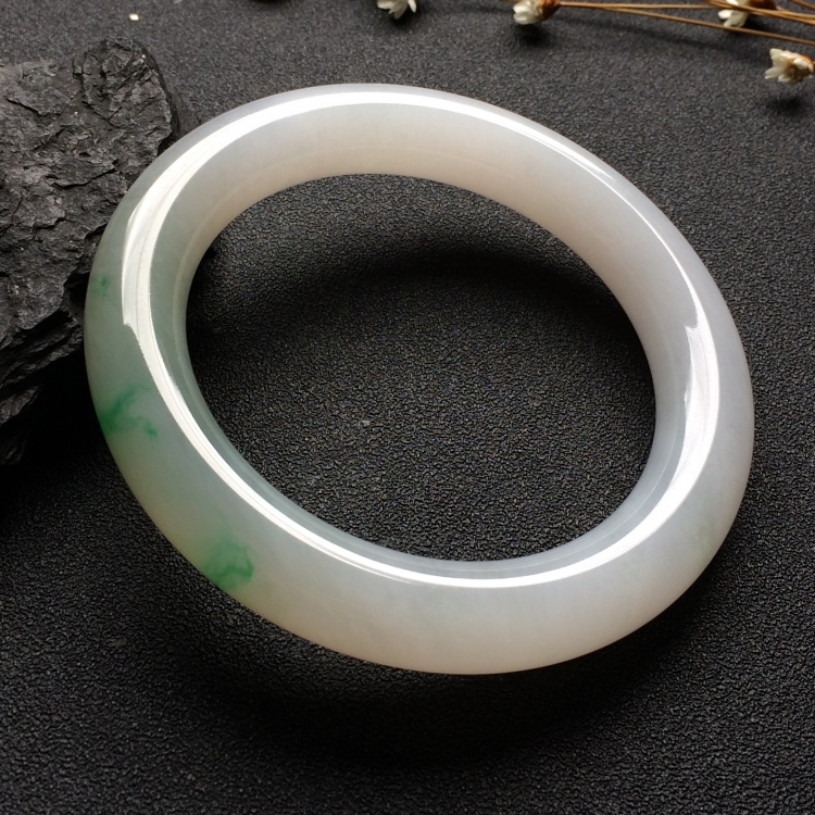 (超值推荐)糯冰种飘翠圆条手镯(56mm)