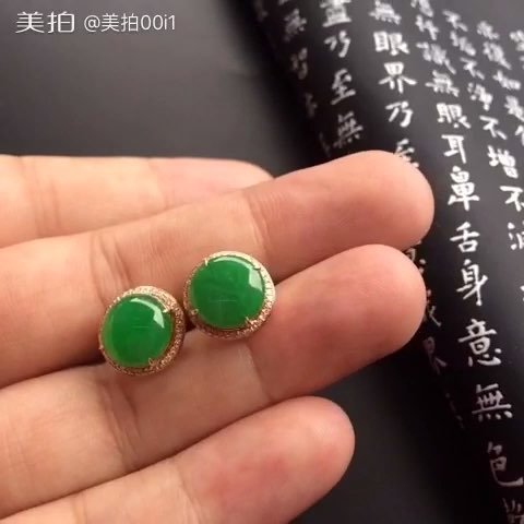 (超值推荐)糯冰种阳绿镶玫瑰金钻石耳钉