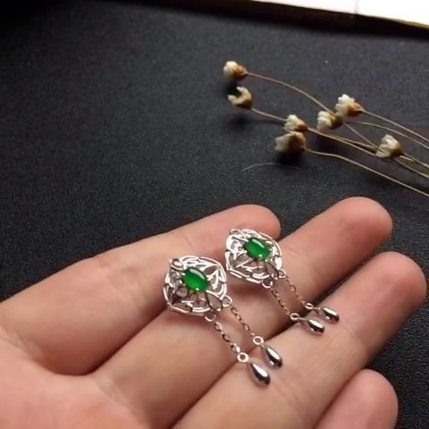 (超值推荐)镶白金冰种阳绿耳钉