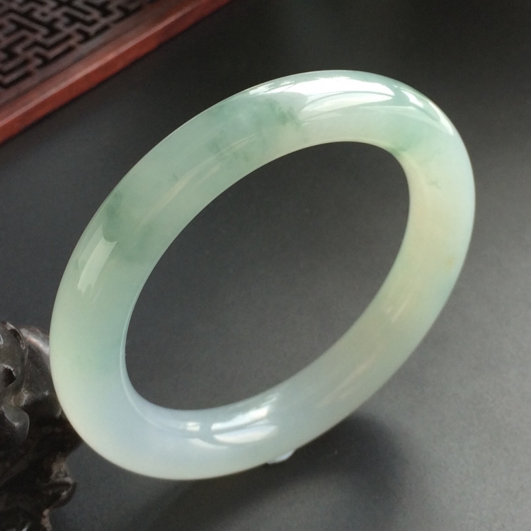 (超值推荐)糯冰种飘花圆条手镯(55.3mm)