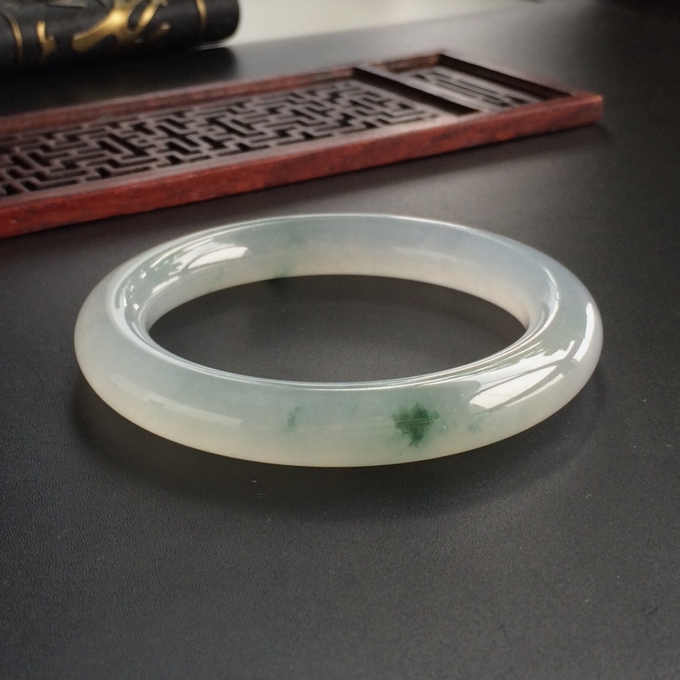 (超值推荐)糯冰种飘花圆条手镯(52.8mm)