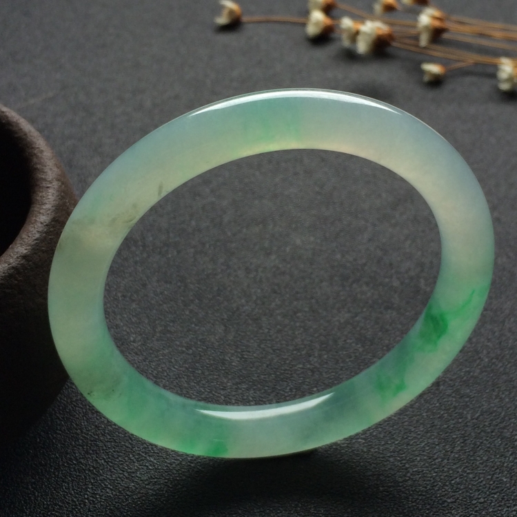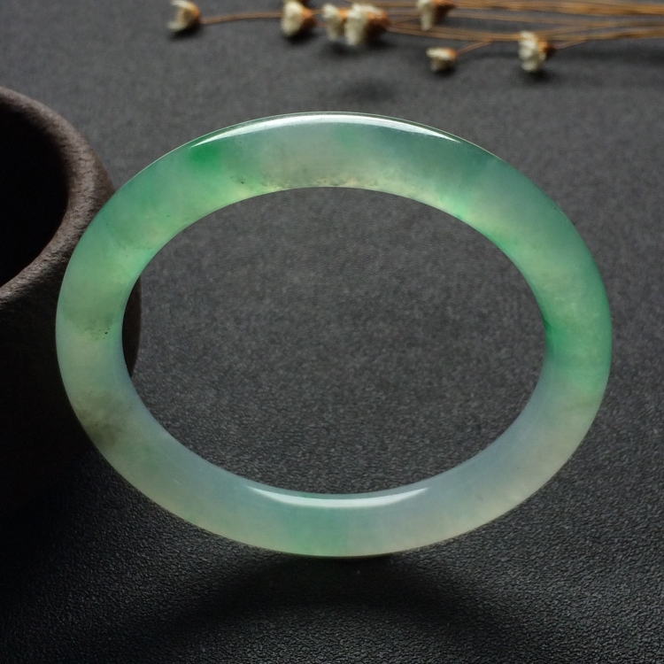 (超值推荐)冰种飘翠圆条手镯(53.3mm)