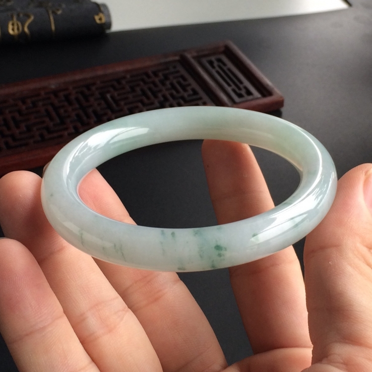 (超值推荐)糯冰种飘花圆条手镯(57.4mm)