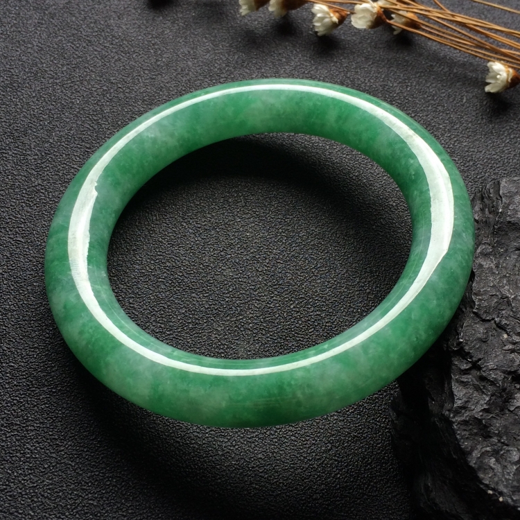 (超值推荐)糯冰种豆绿圆条手镯(55.2mm)