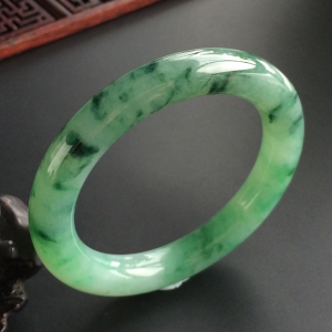 (超值推荐)糯冰种豆绿圆条手镯(54.7mm)