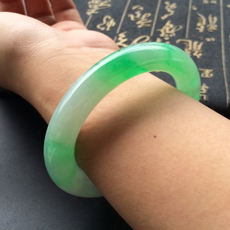 (超值推荐)糯冰种飘阳绿圆条手镯(55.6mm)