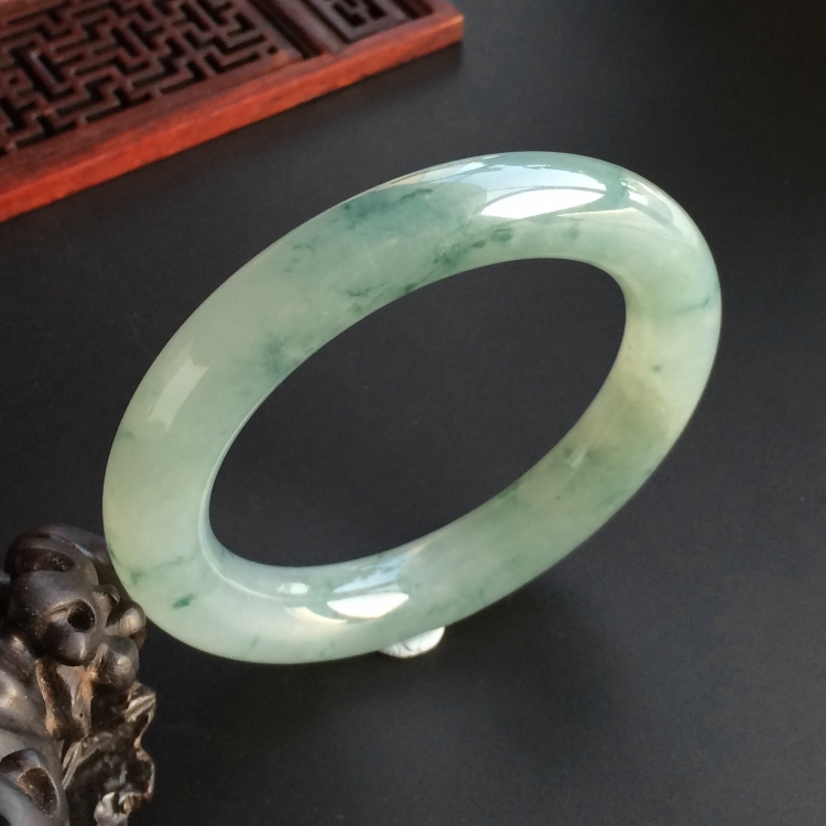 (超值推荐)糯冰种飘花圆条手镯(56.5mm)