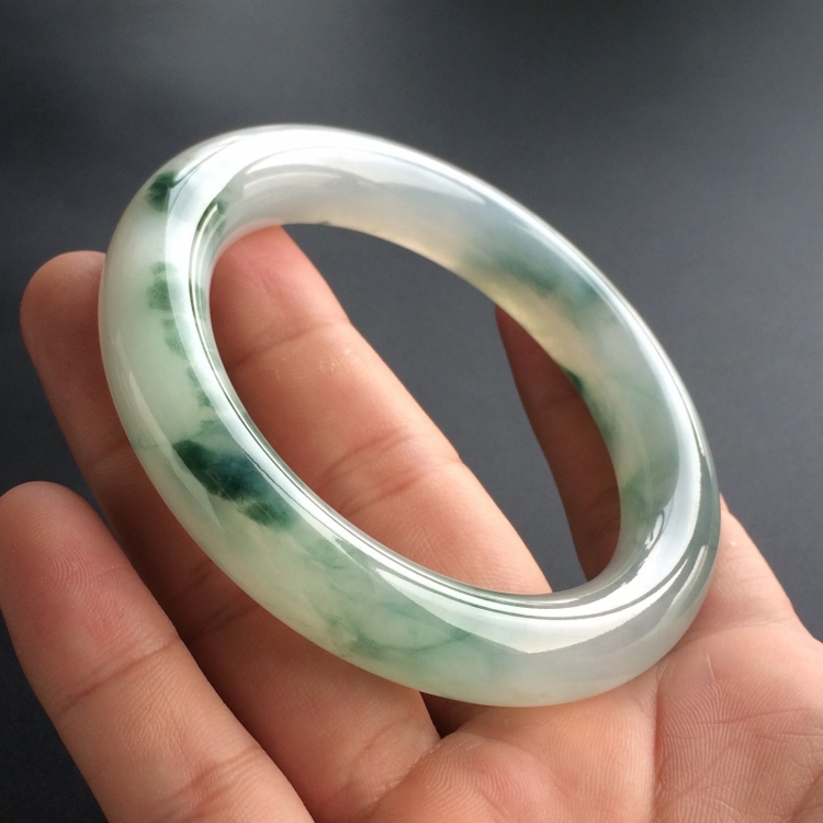 (超值推荐)糯冰种飘翠圆条手镯(57.2mm)