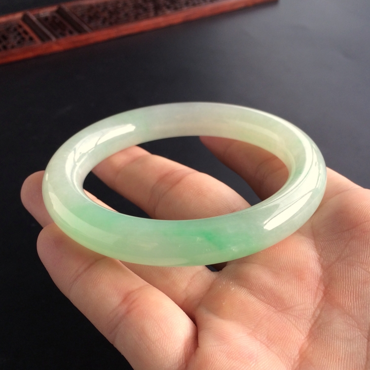 (超值推荐)糯冰种晴水略飘翠圆条手镯(58.3mm)