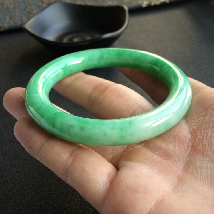 (超值推荐)糯冰种飘翠圆条手镯(57.2mm)