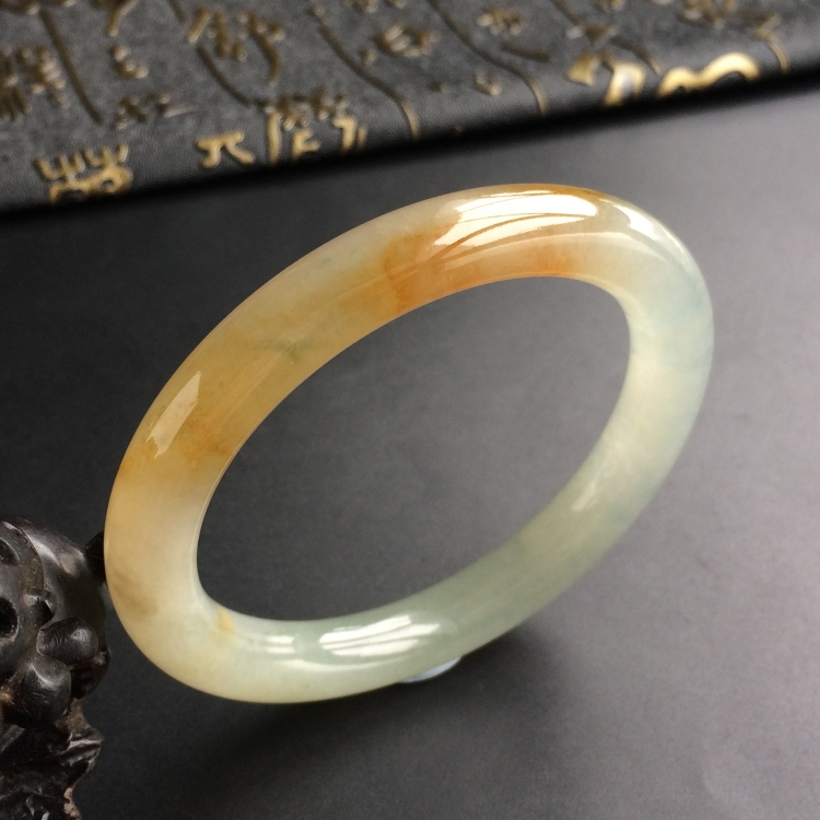 (超值推荐)冰种黄翡略飘花贵妃镯(55.4mm-48.8mm)