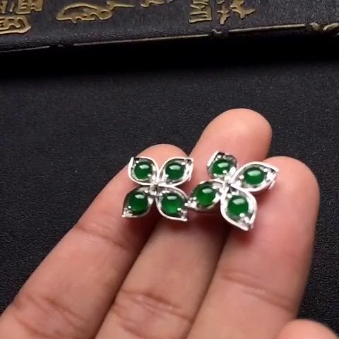 (超值推荐)镶白金冰种深绿花型耳钉