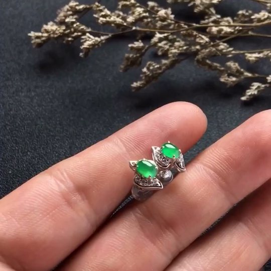 (超值推荐)镶白金钻石冰种绿晴水耳钉
