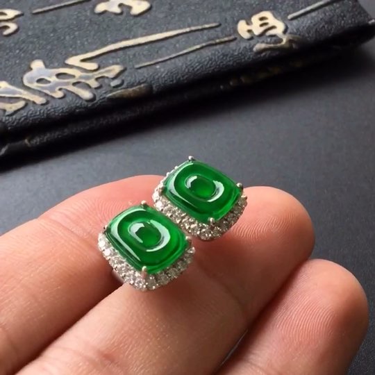 (超值推荐)冰种正阳绿福在眼前耳钉一对