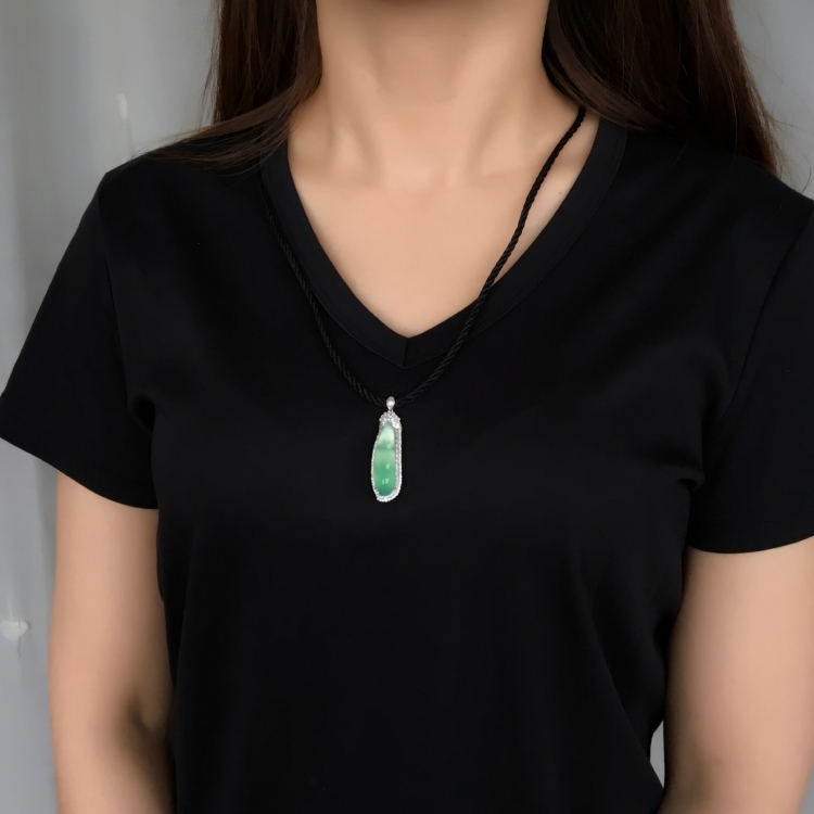 (超值推荐)冰种绿晴水镶白金钻石四季豆胸坠