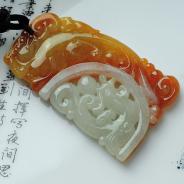 冰种红黄翡缅甸翡翠仿古龙牌挂件