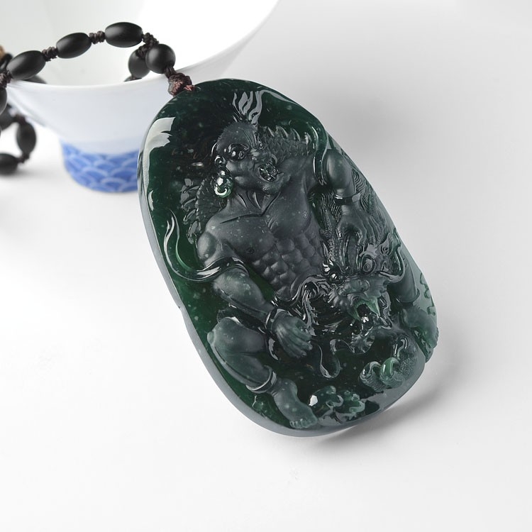 描 述:糯冰种蓝水挂件——降龙罗汉。玉质温润,牌型大气厚实,人物雕刻逼真细腻,神龙威武,双目有神,罗汉气势十足。双面雕刻,工艺扎实稳重,线条力量感十足;降龙罗汉乃佛祖座下弟子,法力无边,助佛祖降龙伏妖,立下不少奇功。后化身济公在民间救苦救难,故佩戴降龙罗汉可趋利避害,岁岁平安;略透,可见天然石纹及棉、棉线,石纹已经过雕刻美化,瑕不掩瑜。提供玉雕界民间巧匠收藏证书。