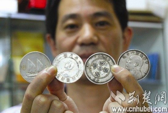 图为:钱币收藏“袁大头”最容易出手 (记者朱安璋摄)