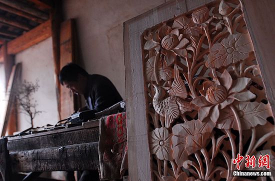 在云南大理白族自治州剑川县,始于公元十世纪的剑川木雕远近闻名。在木雕村里,孩子从小就开始学习木雕,在15岁就可以做出木雕手工。延续千年的木雕工艺代代相传。据了解,剑川木雕主要用于建筑物装饰和家具,尤其是云木雕花镶嵌大理石家俱,具有民族特色,远销欧、美等数十个国家和地区,全国各地的文物修复与古建筑修建都需要剑川的木雕和木匠。任东 摄