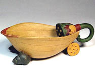 莲藕紫砂杯造型独特有趣,然而在市场上我们见到的紫砂杯,颜色都比较单一,不是枣红色的就是清黑色的,像这款以枣红,暗黄、青绿色中色彩融合的莲藕杯的将造型表达的更加的惟妙惟肖,不难看出盛水的杯子是一片荷花瓣的造型,杯手是莲藕的造型,莲藕根部的扭曲感给人一种很独特的艺术美感,相信用这么有趣生动的紫砂杯来招待客人或者摆放家中,会将你整个人的幽默感和个人品味大大提升。此款紫砂莲藕杯在博宝宝珍商城中受到很多博宝网友的喜爱。希望此款可爱的紫砂莲藕杯能给你的生活中增添一份乐趣